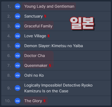 넷플릭스 쇼 드라마 월드 차트 닥터 차정숙 나쁜 엄마 퀸메이커 낭만닥터 김사부 순위 영어제목 Ver.230511 인도네시아 일본